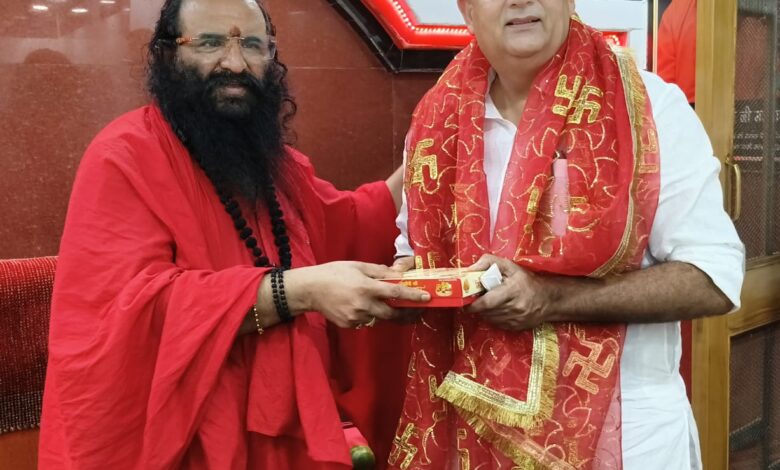 हरिद्वार, बुधवार — श्रवण नाथ मठ में आज जिला पंचायत अध्यक्ष राजेंद्र चौधरी ने अखिल भारतीय अखाड़ा परिषद एवं श्री मनसा देवी मंदिर ट्रस्ट के अध्यक्ष श्रीमहंत रविंद्र पुरी महाराज से शिष्टाचार भेंट कर उनका आशीर्वाद प्राप्त किया। इस मौके पर धार्मिक, सामाजिक एवं विकास से जुड़े विभिन्न विषयों पर चर्चा हुई।