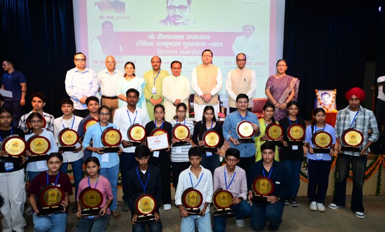 मुख्यमंत्री श्री पुष्कर सिंह धामी ने गुरुवार को नानूरखेड़ा स्थित एससीईआरटी ऑडिटोरियम में आयोजित पंडित दीनदयाल उपाध्याय शैक्षिक उत्कृष्टता पुरस्कार समारोह में बोर्ड परीक्षाओं में शीर्ष 10 स्थान प्राप्त करने वाले हाईस्कूल एवं इंटरमीडिएट के 75 मेधावी छात्र-छात्राओं को पुरस्कृत किया। इस मौके पर बोर्ड परीक्षाओं में उत्कृष्ट परिणाम देने वाले विद्यालयों के तीन-तीन प्रधानाचार्यों के साथ ही श्रेष्ठ प्रदर्शन करने वाले शीर्ष 50-50 विद्यालयों के प्रधानाचार्यों को भी सम्मानित किया।
