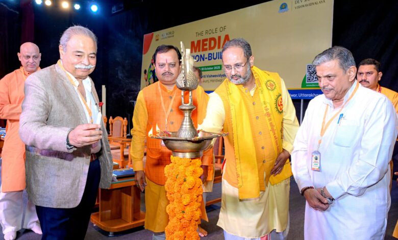 देव संस्कृति विश्वविद्यालय हरिद्वार में शुक्रवार को राष्ट्र निर्माण में मीडिया की भूमिका विषय पर एक दिवसीय राष्ट्रीय सम्मेलन का आयोजन हुआ। सम्मेलन का शुभारंभ राष्ट्रीय स्वयंसेवक के सरकार्यवाह श्री दत्तात्रेय होसबोले, देसंविवि के कुलपति श्री शरद पारधी, प्रतिकुलपति युवा आइकॉन डॉ चिन्मय पण्ड्या, पूर्व सांसद श्री तरुण विजय सहित अतिथियों ने सामूहिक दीप प्रज्वलन कर किया। दिनभर चले इस सम्मेलन में कुल पाँच सत्र हुए, जिनमें वक्ताओं ने मीडिया को भारत को विकसित बनाने में योगदान देने के लिए आह्वान किया।