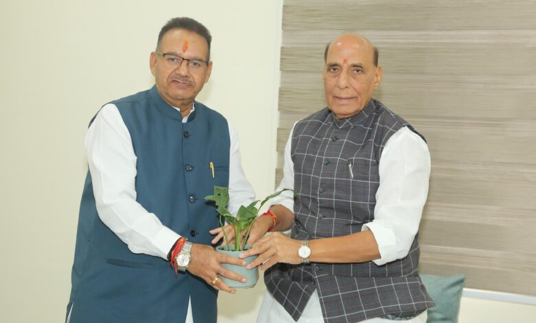 रक्षा मंत्री राजनाथ सिंह से मिले सैनिक कल्याण मंत्री गणेश जोशी