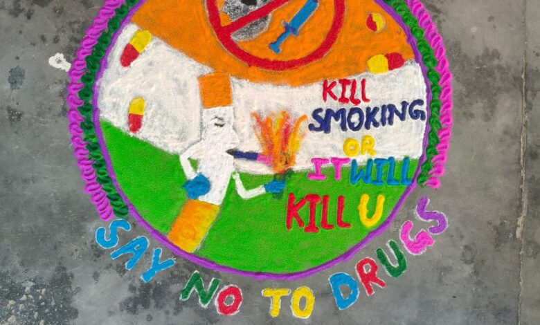 एस एम जे एन महाविद्यालय में आज आतंरिक गुणवत्ता आश्वासन प्रकोष्ठ तथा एंटी ड्रग सेल के संयुक्त तत्वाधान में नशा मुक्त भारत अभियान के अंतर्गत तथा वन्दे मातरम की 150 वीं वर्षगाँठ के उपलक्ष्य में रंगोली प्रतियोगिता, निबन्ध प्रतियोगिता तथा सामूहिक प्रतिज्ञा जागरूकता कार्यक्रम का आयोजन किया गया। इस अवसर पर भारतीय अखाड़ा परिषद अध्यक्ष श्रीमहन्त रविन्द्र पुरी ने अपने सन्देश में युवाओं को नशा मुक्त जीवन अपनाने की अपील करते हुए कहा कि नशा मुक्त रहकर ही स्वस्थ जीवन पाया जा सकता हैं। श्रीमहन्त ने कहा कि स्वस्थ समाज ही सशक्त राष्ट्र की नींव रखता हैं। कार्यक्रम की अध्यक्षता कर रहे महाविद्यालय के प्राचार्य प्रो सुनील कुमार बत्रा ने अपने संबोधन में कहा कि कॉलेज की एंटी ड्रग सेल माननीय प्रधानमंत्री के विजन नशा मुक्त भारत के लिए निष्ठा और लग्न से कार्य कर नशा मुक्त भारत अभियान को निरंतर गति दे रही हैं। प्रो बत्रा ने बताया कि एस एम जे एन जिले में नशा मुक्त कैंपस बनकर युवाओं को नशे से बचाने का हर संभव प्रयास कर रहा हैं। प्रोफ़ेसर बत्रा ने महाविद्यालय को तम्बाकू मुक्त परिसर बनने पर छात्र छात्राओं को बधाई प्रेषित की हैं । उन्होंने वन्दे मातरम की 150 वीं वर्षगाँठ के उपलक्ष्य में युवाओं को राष्ट्र के प्रति प्रेम तथा समर्पण भाव रखने का सन्देश भी दिया। इस अवसर पर अधिष्ठाता छात्र कल्याण डॉ संजय कुमार माहेश्वरी ने कहा कि युवाओं को आत्मचिंतन कर सही मार्ग चुनने को कहा। इस अवसर पर एंटी ड्रग सेल के नोडल अधिकारी डॉ पल्लवी राणा एवं विनय थपलियाल