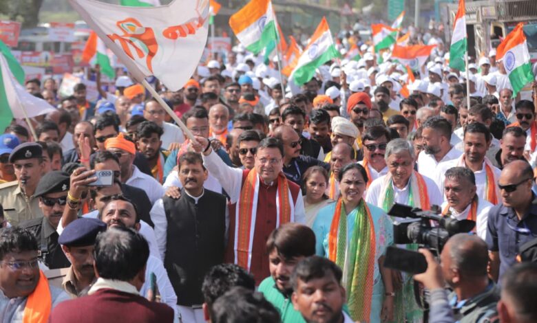 केंद्रीय रक्षा मंत्री राजनाथ सिंह के साथ मुख्यमंत्री पुष्कर सिंह धामी ने मंगलवार को साधली, बडा़ेदरा, गुजरात में सरदार@150 यूनिटी मार्च के अंतर्गत आयोजित सरदार गाथा कार्यक्रम में प्रतिभाग किया।