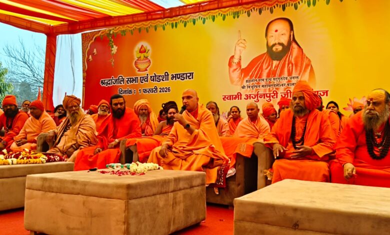 हरिद्वार, महामंडलेश्वर स्वामी अर्जुन पुरी महाराज बालयोगी के ब्रह्मलीन होने के पश्चात हरिद्वार के सप्तसरोवर मार्ग स्थित श्री तुलसी मानस मंदिर में श्रद्धांजलि सभा एवं षोडशी भंडारे का आयोजन किया गया। इस अवसर पर देशभर से बड़ी संख्या में संत-महात्मा, अखाड़ों के पदाधिकारी, जनप्रतिनिधि और श्रद्धालु उपस्थित रहे। श्रद्धांजलि सभा में जूना अखाड़े के आचार्य महामंडलेश्वर स्वामी अवधेशानंद गिरी, श्री पंचायती अखाड़ा महानिर्वाणी के आचार्य महामंडलेश्वर श्रीमहंत विशोकानंद महाराज, जूना अखाड़े के अंतर्राष्ट्रीय सभापति श्रीमहंत प्रेमगिरी महाराज सहित अनेक वरिष्ठ संतों ने सहभागिता की। इस दौरान मंच पर तेरह अखाड़ों के संतों की उपस्थिति में स्वामी कामेश्वरानंद पुरी महाराज का विधिवत पट्टाभिषेक किया गया। परंपरानुसार चादर विधि संपन्न कराई गई। कार्यक्रम का संचालन जूना अखाड़े के पूर्व अंतर्राष्ट्रीय सचिव श्रीमहंत देवानंद सरस्वती महाराज ने किया। सभा में उपस्थित संतों ने ब्रह्मलीन महामंडलेश्वर स्वामी अर्जुन पुरी महाराज को श्रद्धांजलि अर्पित करते हुए उनके शिष्य स्वामी कामेश्वरानंद पुरी महाराज को गुरु परंपरा का उत्तराधिकार संभालने पर आशीर्वाद एवं शुभकामनाएं दीं। इस अवसर पर नगर विधायक मदन कौशिक, मेयर किरण जैसल समेत भाजपा के कई वरिष्ठ नेताओं ने भी श्रद्धांजलि अर्पित की।