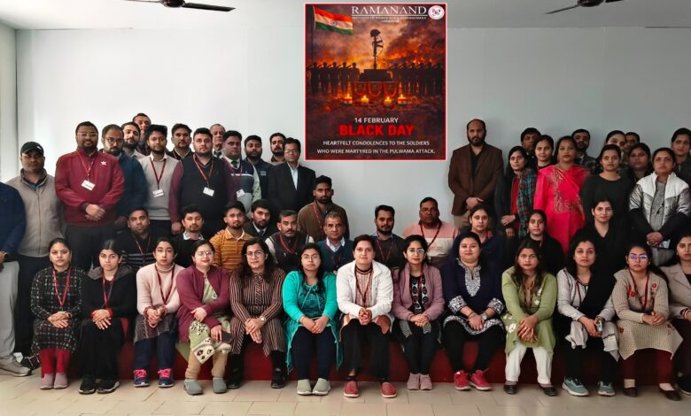 हरिद्वार, रामानन्द इंस्टीट्यूट ऑफ फार्मेसी एंड मैनेजमेंट, हरिद्वार में पुलवामा हमले की सातवीं बरसी पर शहीद हुए सुरक्षाबलों को श्रद्धांजलि दी गई।