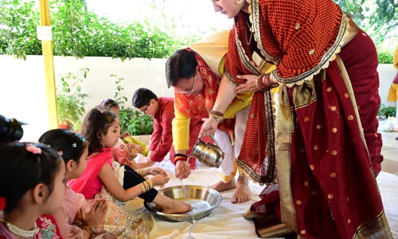 मुख्यमंत्री पुष्कर सिंह धामी ने रामनवमी के पावन अवसर पर मुख्यमंत्री आवास में किया कन्या पूजन, प्रदेश की खुशहाली की कामना