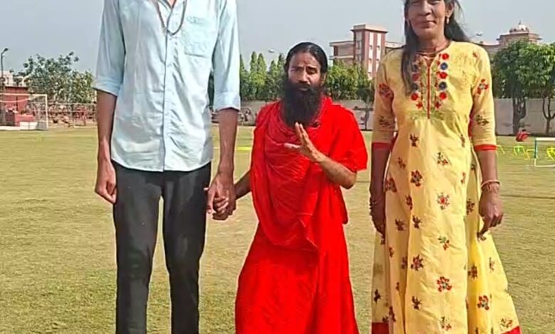 स्वामी रामदेव से मिला दुनिया का सबसे लंबा किशोर, योग और आसन की लेगा प्रशिक्षण