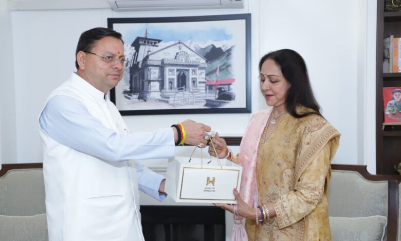 मुख्यमंत्री धामी से नई दिल्ली स्थित उत्तराखण्ड निवास में अभिनेत्री एवं सांसद हेमा मालिनी ने शिष्टाचार भेंट की